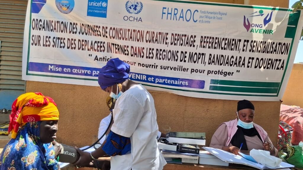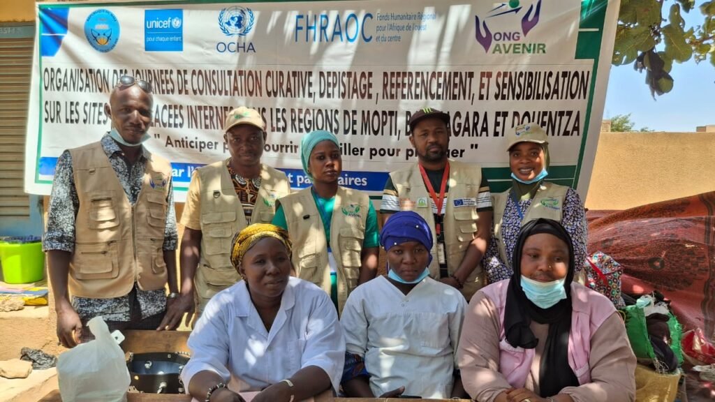Dans le cadre de ses activités visant à soulager la souffrance des populations vulnérables dans la région de Mopti, l’ONG AVENIR a organisé des journées de consultations et de prise en charge médicale gratuites sur le nouveau site des personnes déplacées internes (PDI) de Médina Coura pendant deux jours, ainsi qu’une journée à Djondiori.